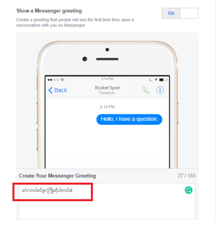ဒါကတော့ Messenger ကိုစဝင်ဝင်ချင်း ခေါင်းစီးမှာ မြင်ရမယ့် Greeting လေးပဲဖြစ်ပါတယ်။